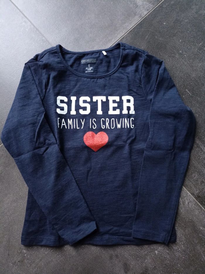 T-shirt manches longues bleu marine avec écriture blanche et coeur rouge pailleté ♥️ Jamais porté