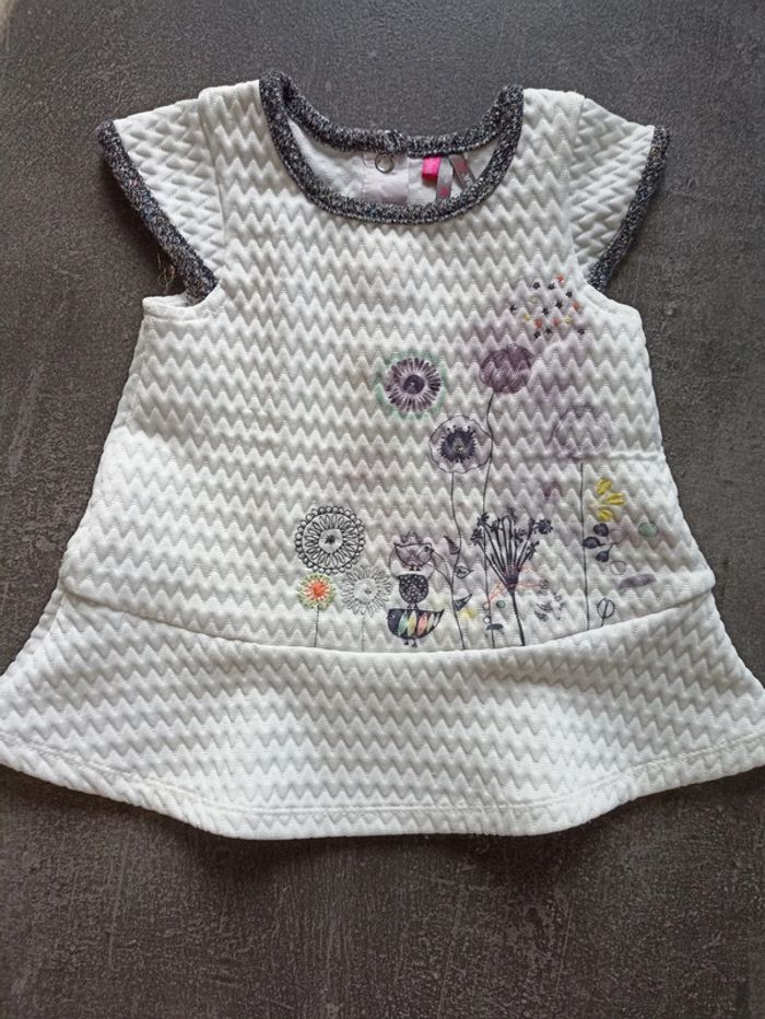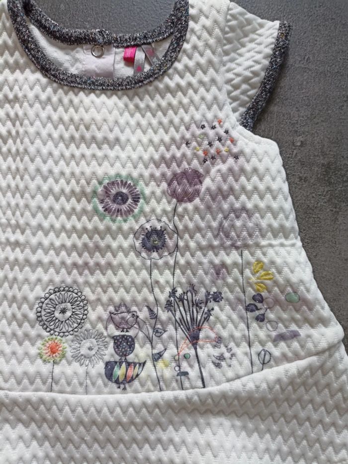 Robe blanche manches courtes. Texture gaufrée.