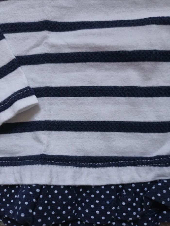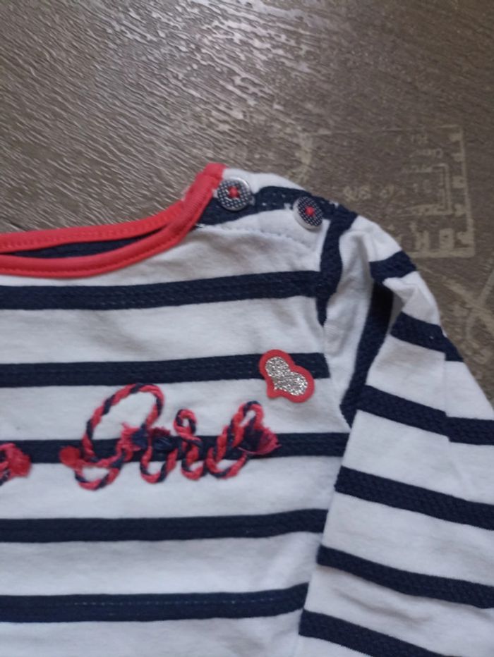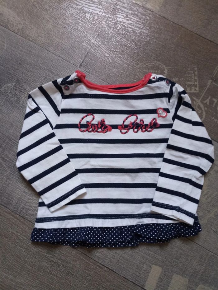 T-shirt manches longues ligné blanc et bleu marine avec écriture "lacet" cute girl. Taille 9 mois / T71