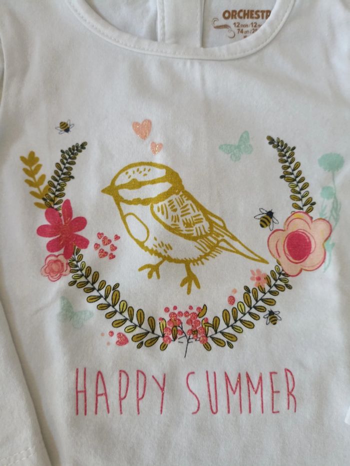 T-shirt manches longues blanc avec motif Taille 12 mois / T74