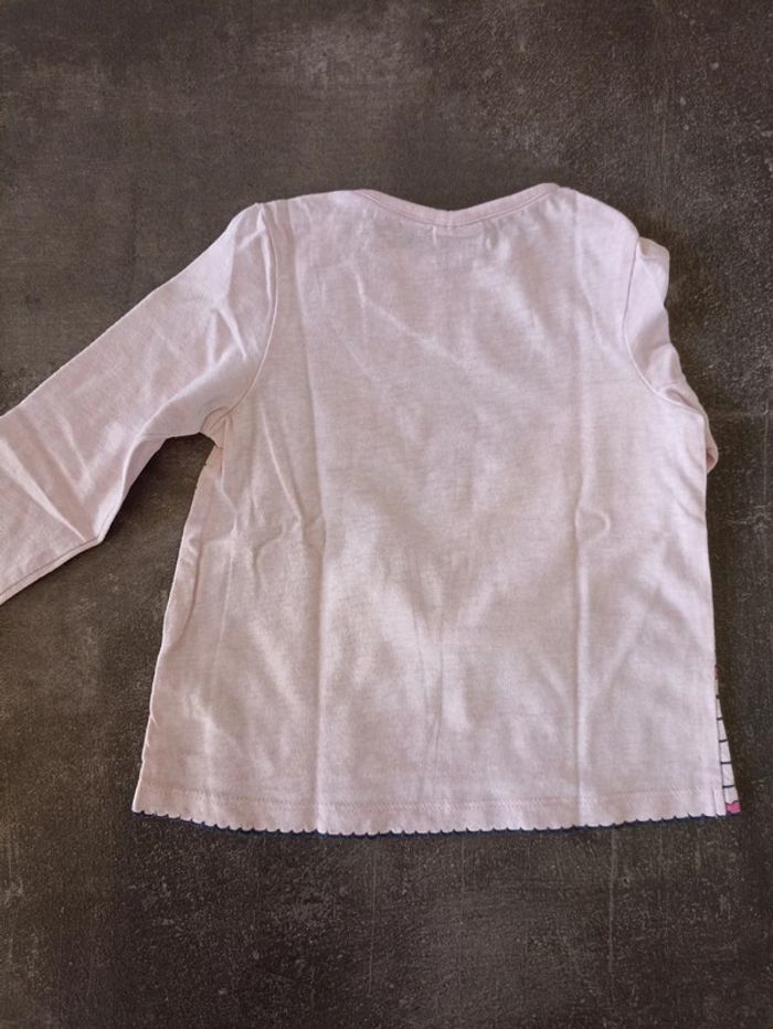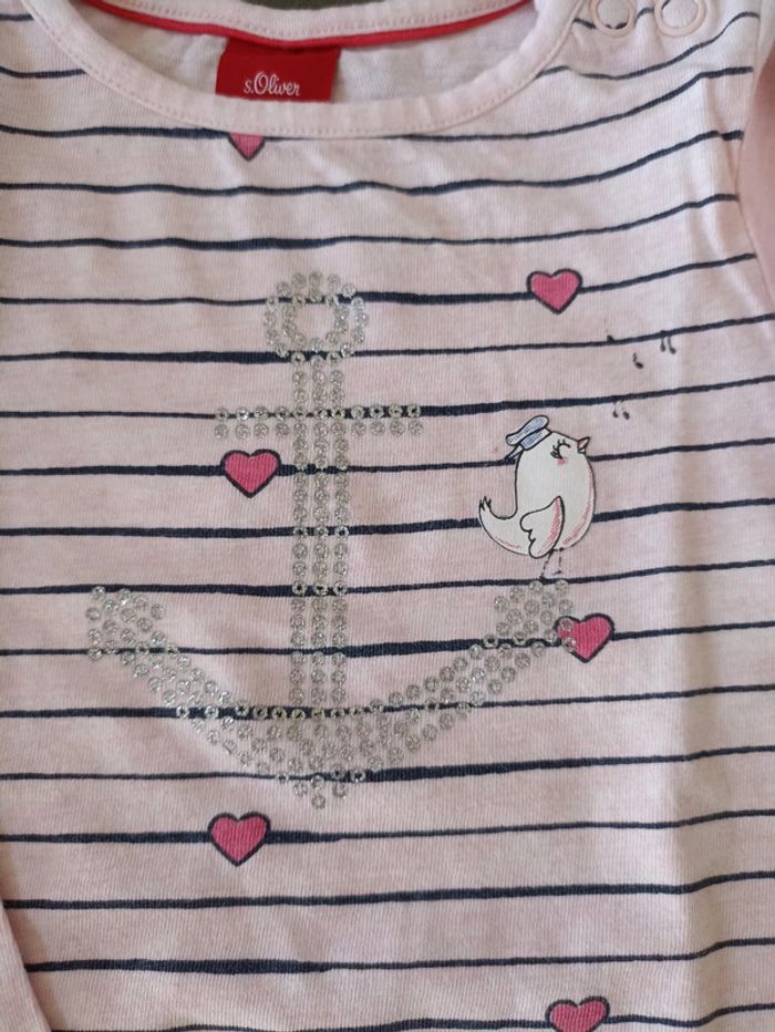 T-shirt manches longues rose ligné bleu marine