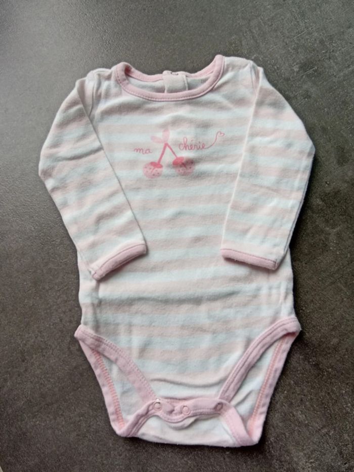 Bodie manches longues lignĂ© rose pĂąle et blanc avec motif 🍒 🐞