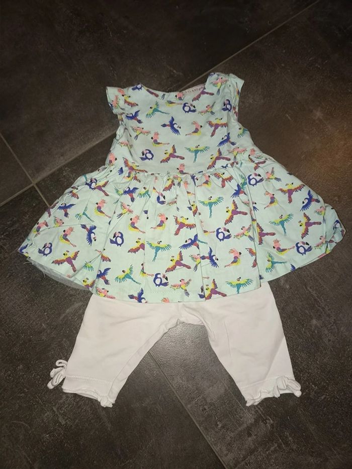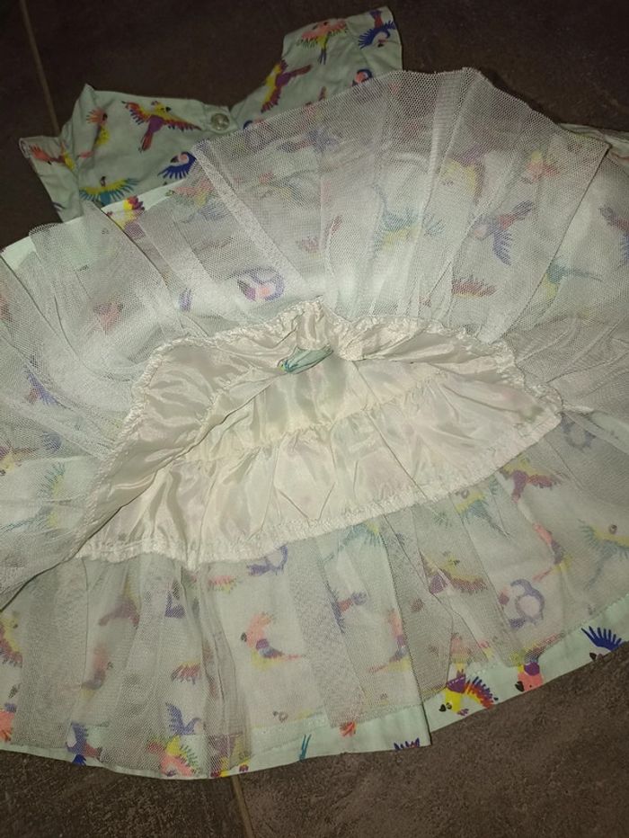 Robe sans manches turquoise avec motif perroquet 🦜 tulle sous la jupe Legging blanc