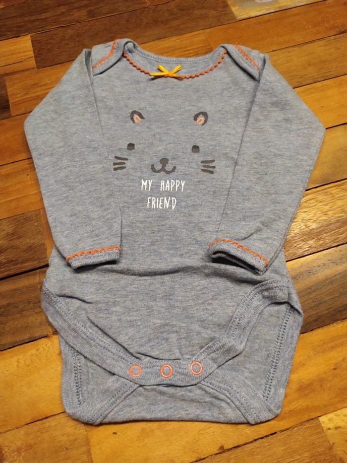Bodie gris/bleu avec motif chat 🐱 et détails rose.