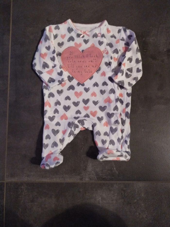 Pyjama blanc avec motif coeur (gris et rose) on sait retourner les manches pour "fermer" les mains
