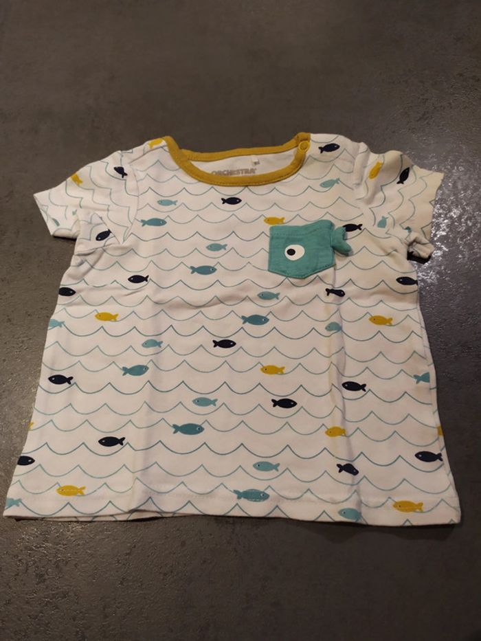 T-shirt avec motif vague 🌊 et poissons 🐟.