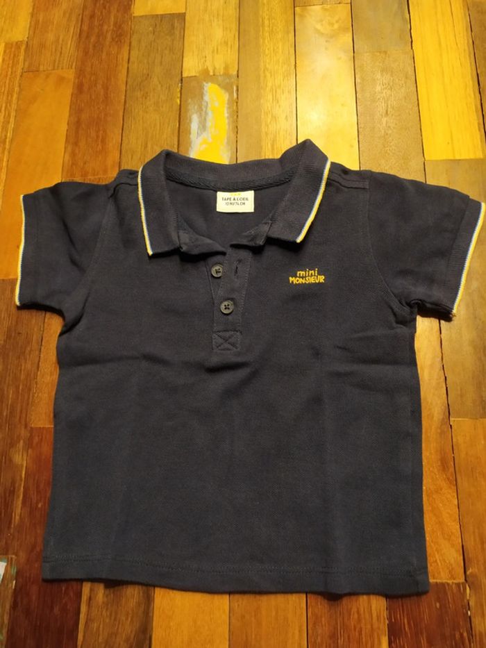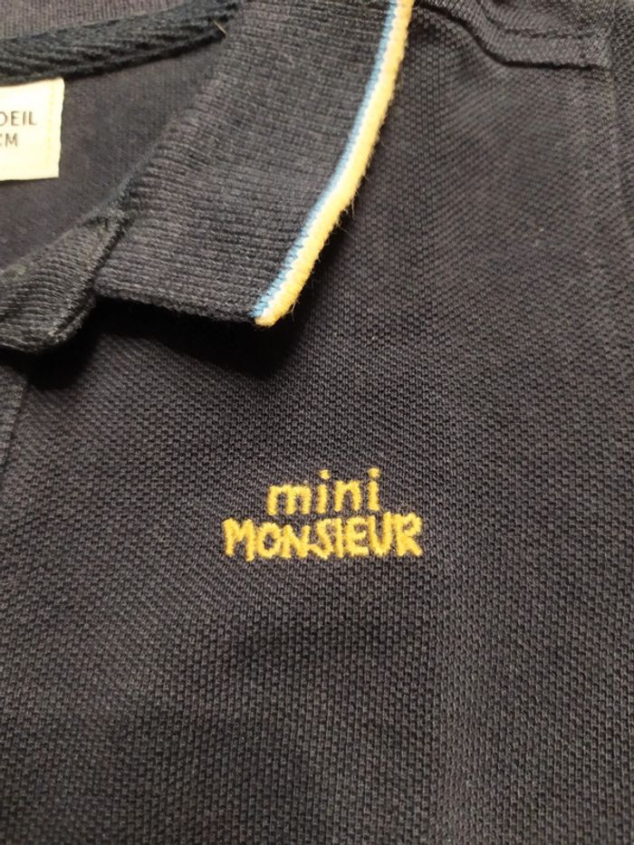 Polo bleu marine avec écriture mini monsieur (jaune)