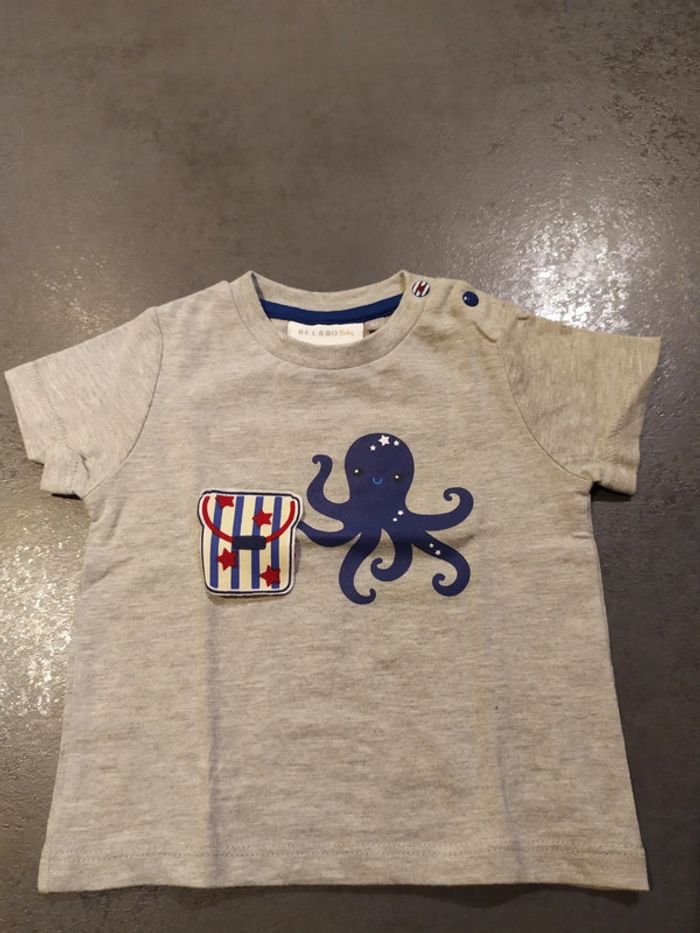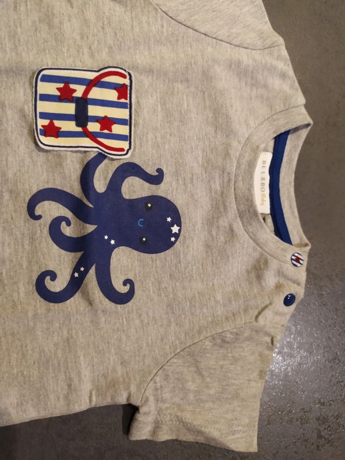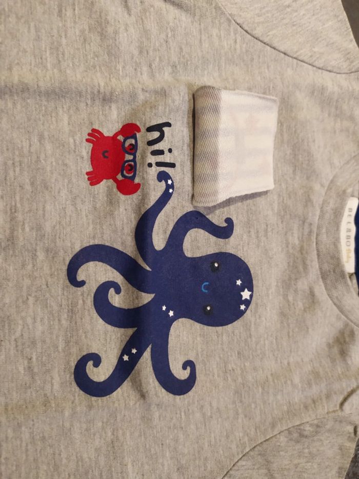 T-shirt gris avec motif pieuvre et petit rabat (le crabe 🦀 est caché sous le sceau)