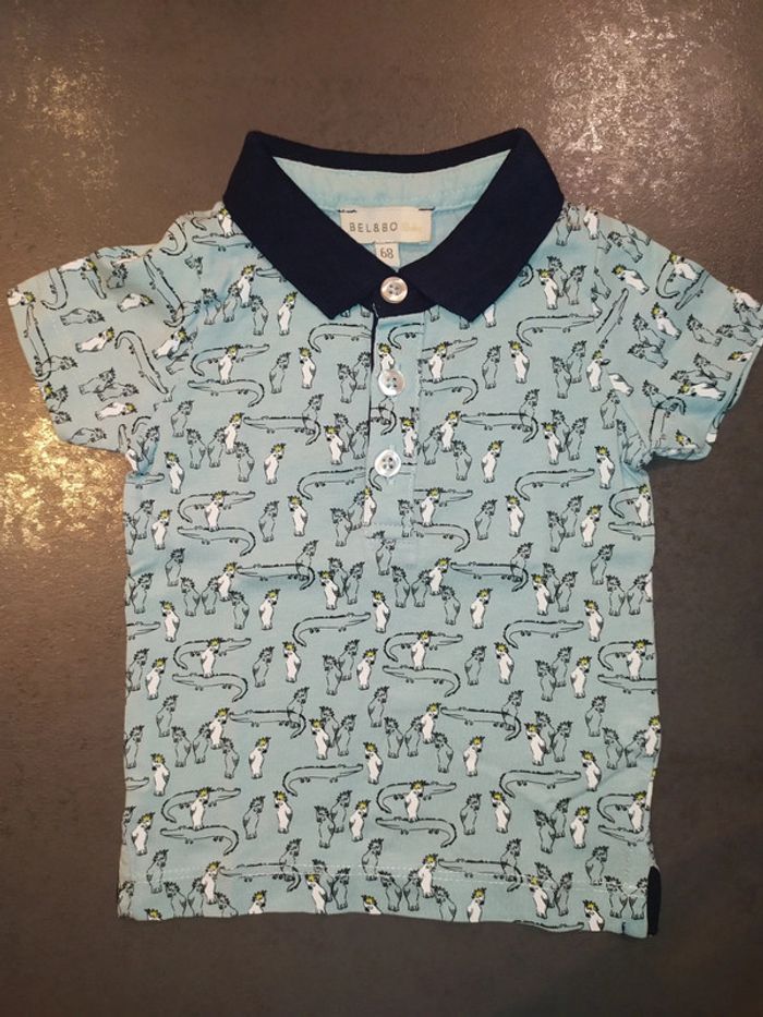 Polo bleu turquoise/clair avec motif crocodile et perroquet. Bel&bo
