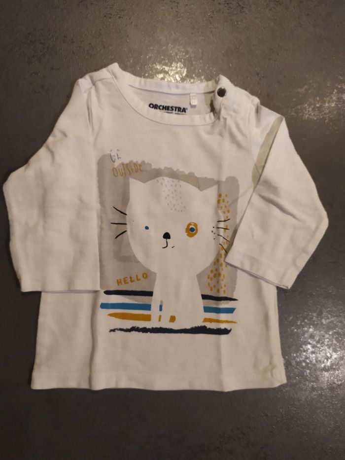 T-shirt blanc avec motif chat 🐈 orchestra