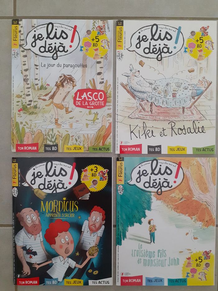 Pour enfants de 6-10 ans. Les 4 n° sont de l'année 2021. 1 roman, des BD et des jeux dans chaque n°. En excellent état. Le lot 6 euros.