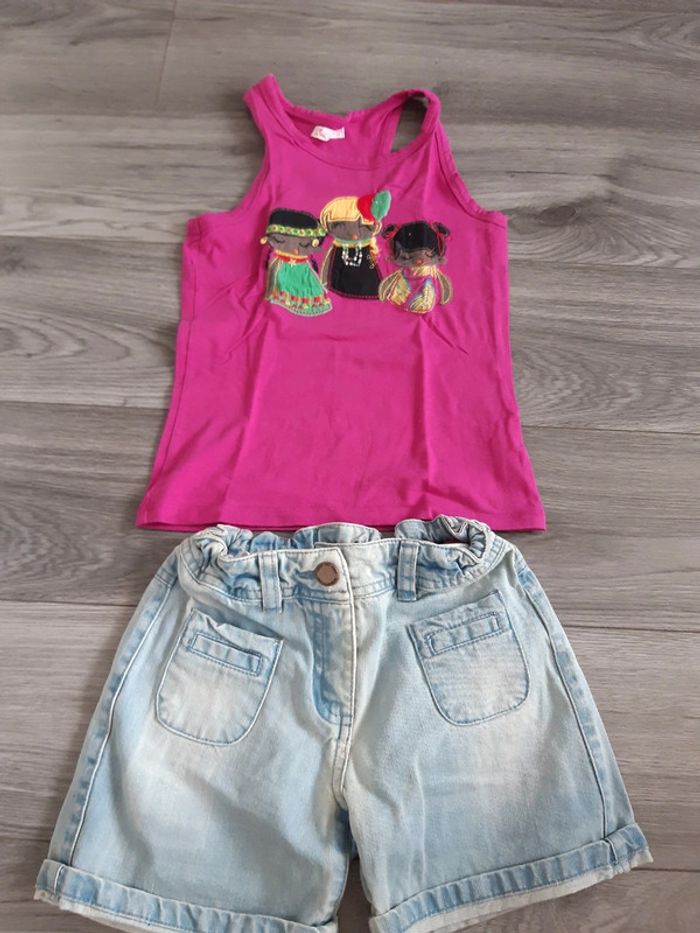 Short en jean tape à l oeil 7 ans et tee shirt dpam 6 ans