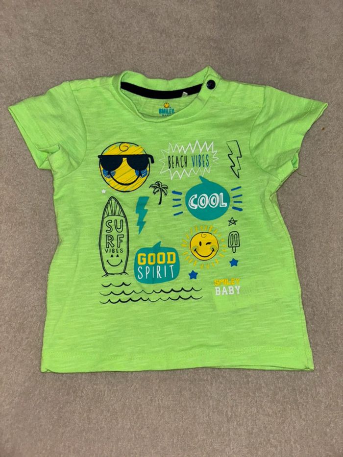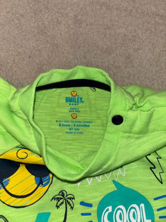 1 er : TEE shirt tom & kiddy bleu 6 mois Porté quelques fois, très bon état 2 ème : TEE shirt vert fluo smiley 6 mois 67cm Peu porté / comme neuf 3 ème : TEE shirt obaibi 6 mois 67cm Peu porté / très bon état
