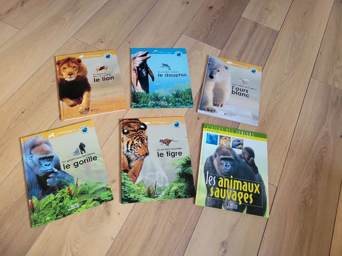 6 documentaires en parfait état : le gorille, le lion, le tigre, l ours blanc, le dauphin et les animaux sauvages #ka_14jouets