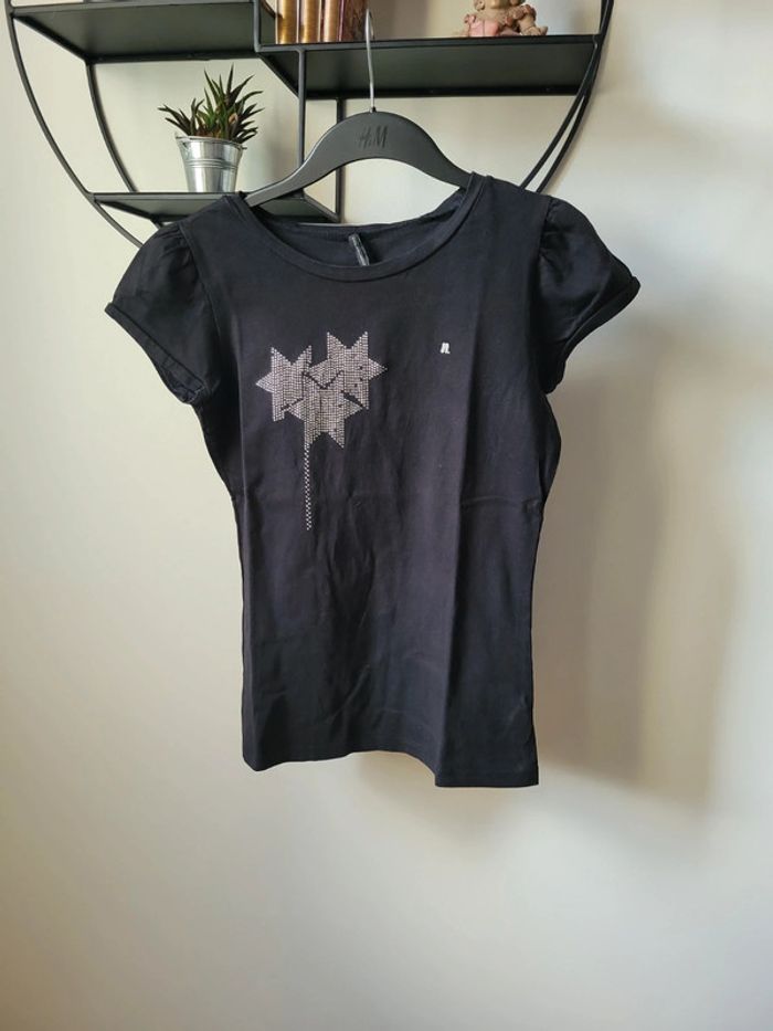 Ts noir etiquette xl taille L ceintree. 100% coton En très bon etat 38 cm epaule à epaule, 62 cms de long, 44 cms d aisselle a aisselle, taille 42 cms #ka_14vetementsfemme