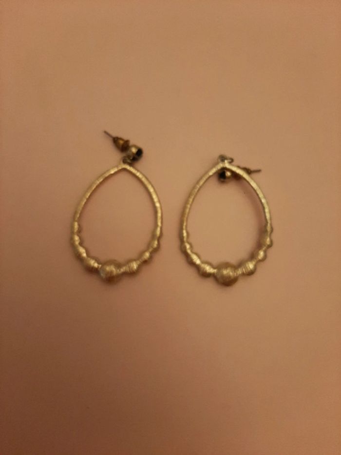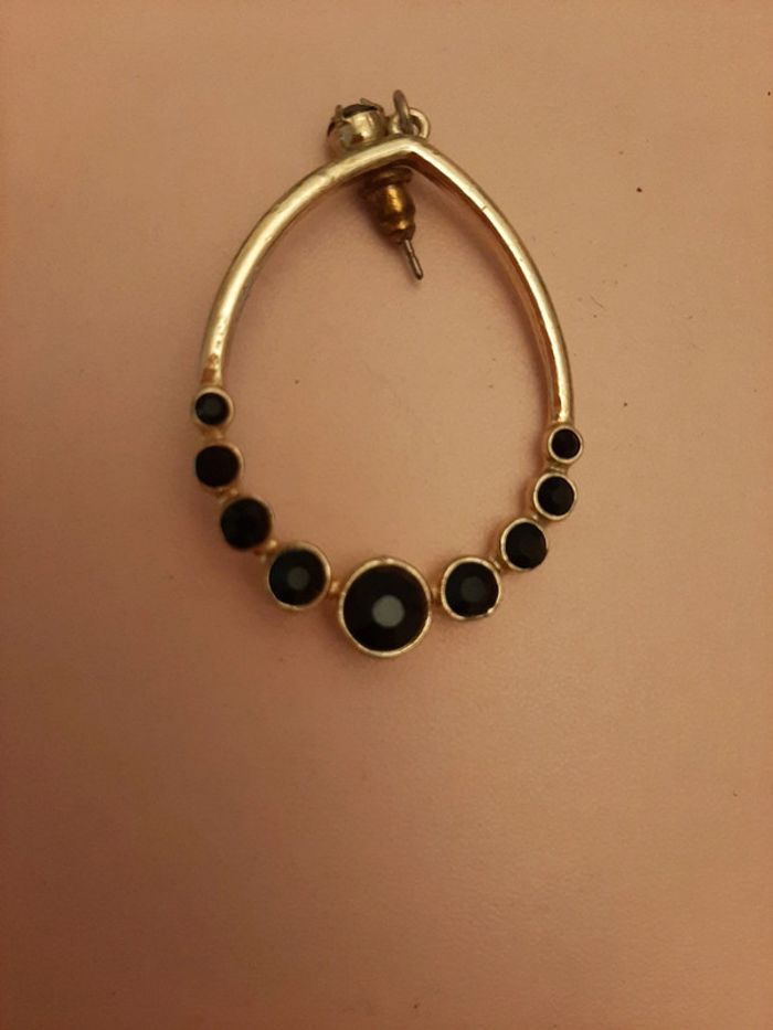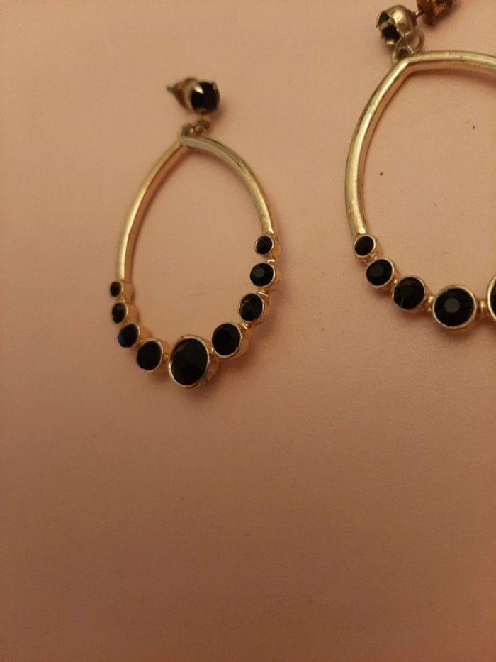 Boucles d oreilles dorées et pierres noires 3cm - photo numéro 4