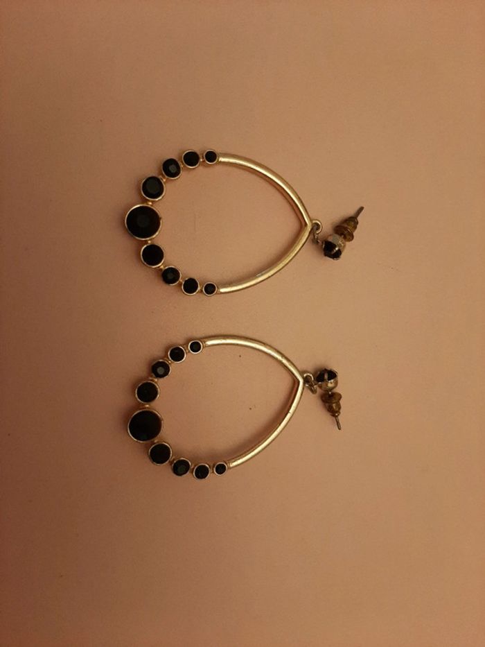 Boucles d oreilles dorées et pierres noires 3cm - photo numéro 2