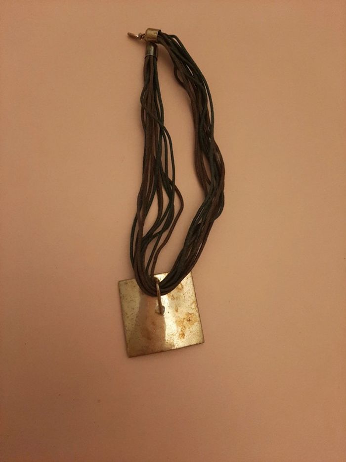 Collier ras du cou fantaisi carré émaux et metal - photo numéro 3