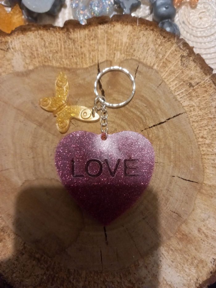 Porte clé cœur love et papillon résine epoxy - photo numéro 1