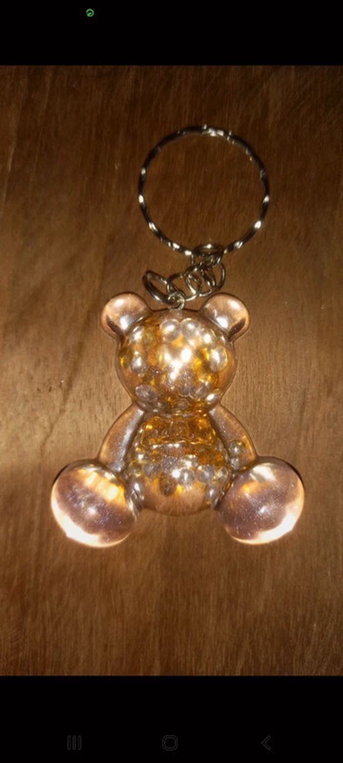 Porte clé ourson or argent epoxy