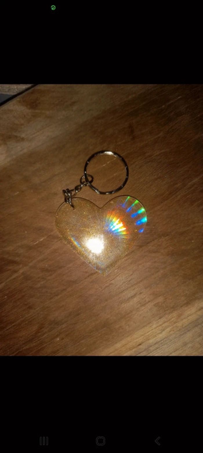 Porte clé cœur holographique epoxy
