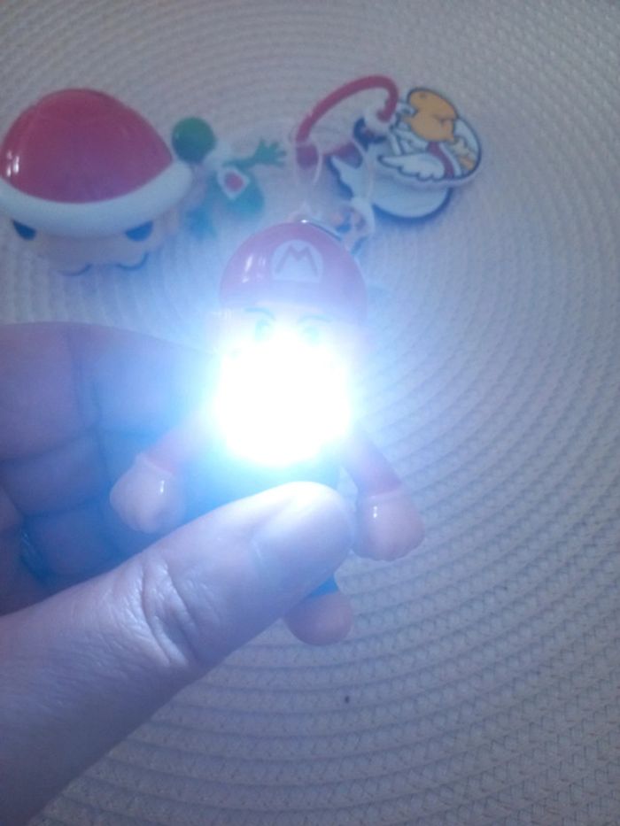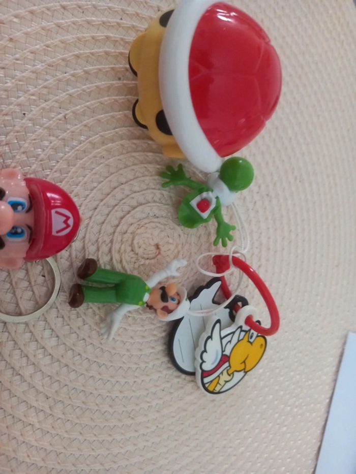 Le lot comprend 1 carapace 1 porte clé Mario lumineux et fait un bruit 1 porte clé luidgi 2 porte clé yoshi