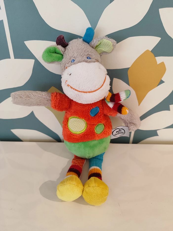 Joli doudou vache mots d'enfants. En très bon état ! 35 cm N'hésitez pas à consulter mon dressing pour plus d doudous mots d'enfants 🙂🌸