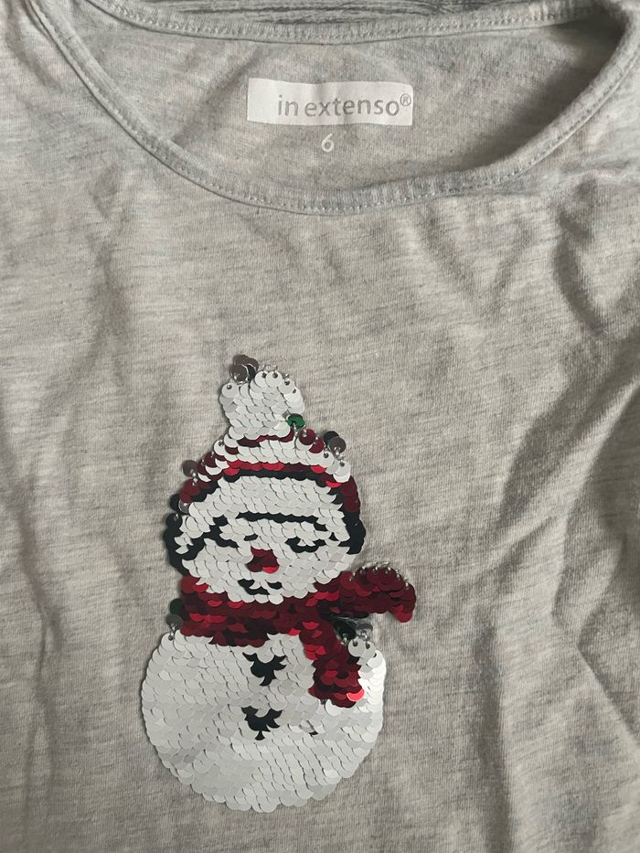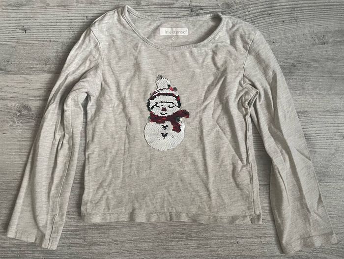 Tee shirt à manches longues de la marque In Extenso Taille 6 ans Motif sequin réversible de Noël Petites traces d’utilisation Occasion, bon état