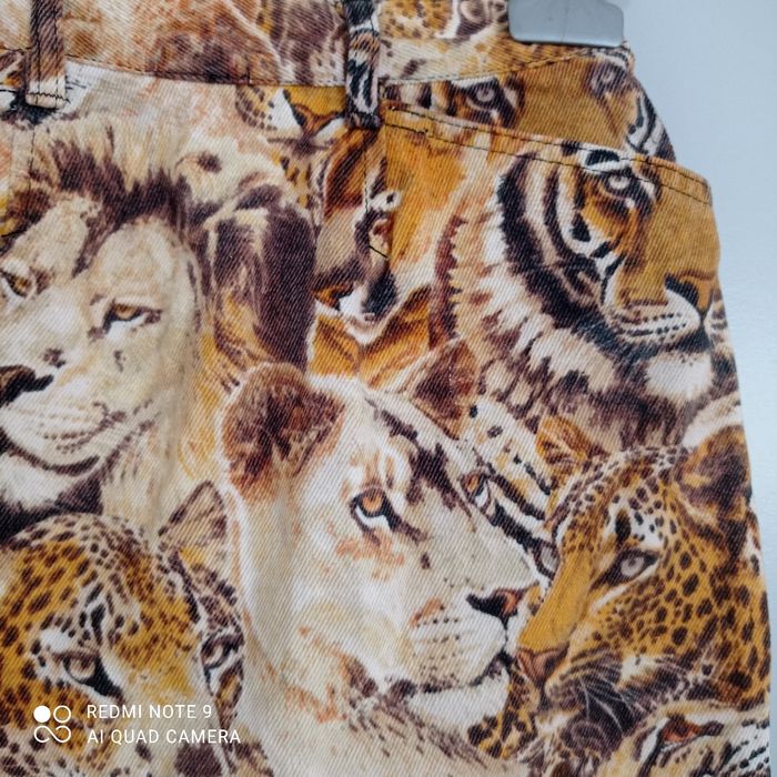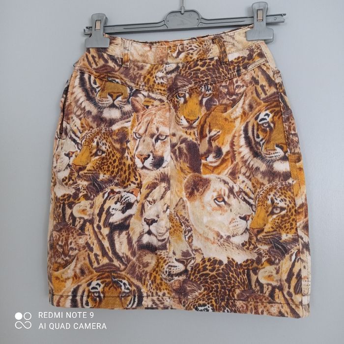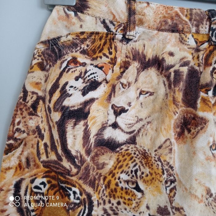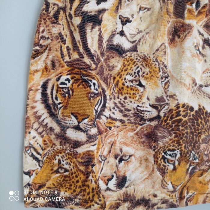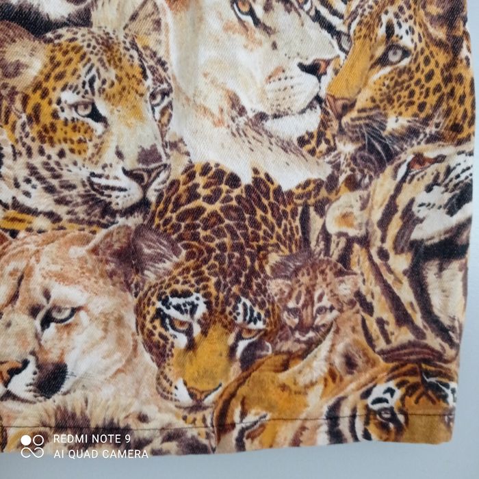 Motifs lions, lionnes, tigres, léopards. Pas d étiquette. Donc je ne connais pas la matière. Taille estimée. Voici les mesures prises à plat : largeur à la taille : 30cm, longueur : 45cm.