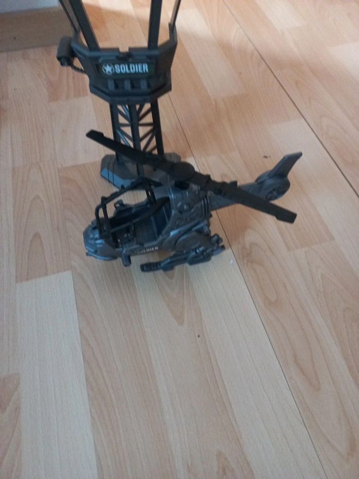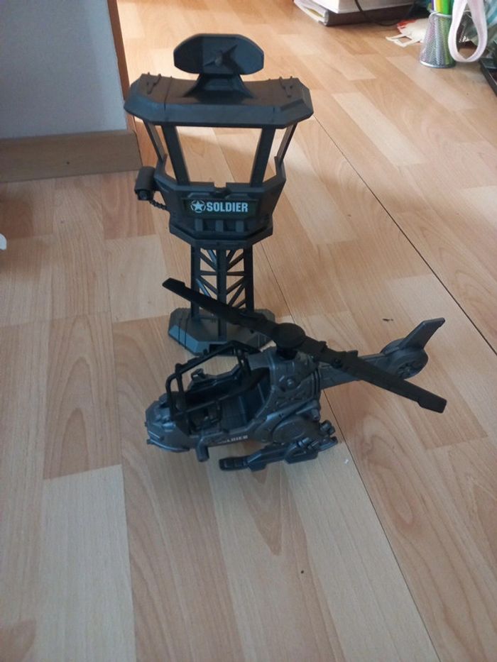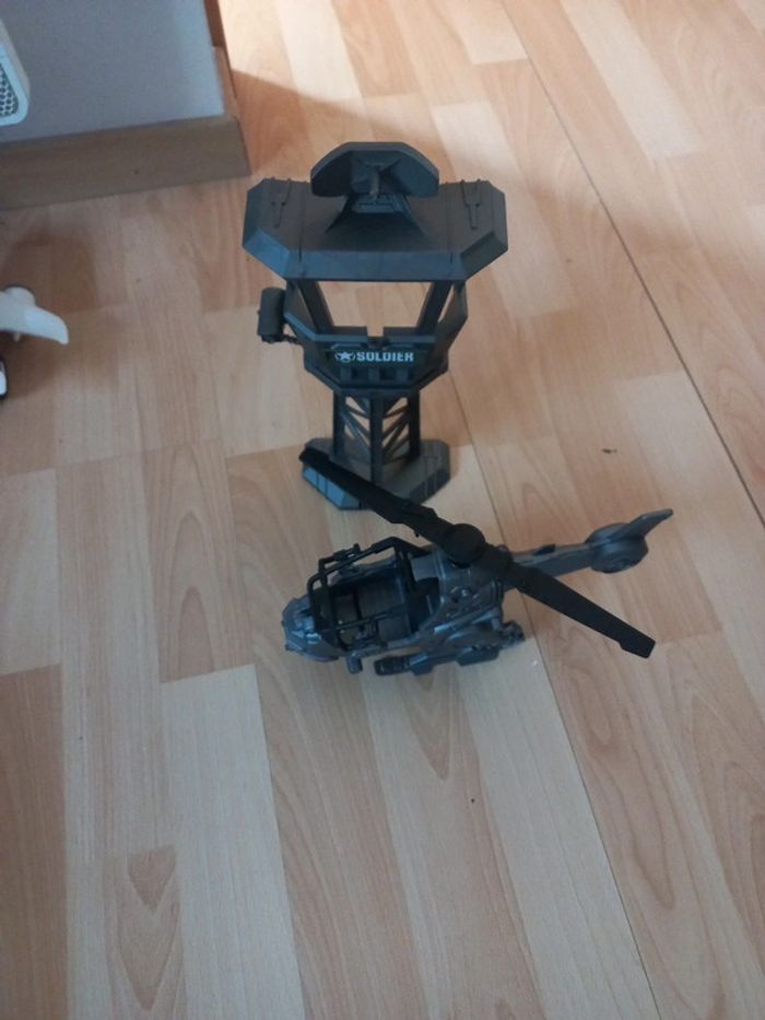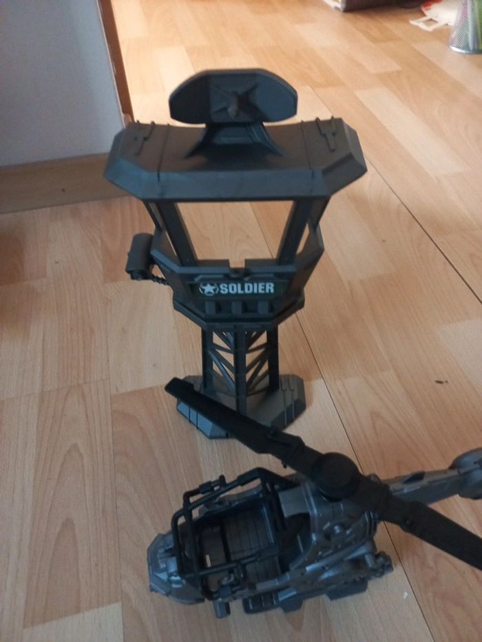 Jouets de l armée une tour et un hélicoptère en très bon état.