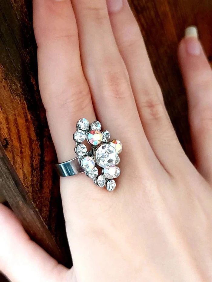 Magnifique bague neuve ajustable, avec pierres blanches. D'autres bijoux sont à découvrir dans mon dressing #bijouxsupernova 🌌 Je suis disponible pour d'autres renseignements / ou demandes de lot. 🌌 Les envois se font soit le jour même ou en 72h maxi ! 🌌 J'accepte les offres raisonnables et les réductions sont activées sur les lots, de plus, un petit cadeau est toujours rajouté au colis. Tags Mode vintage chic hippie 60's 70's 80's 90's BCBG robe chemise pantalon jupe classe bijoux boucles d'oreilles collier pendentif bracelet celtique ethnique bohème ésotérique gothique punk grunge old school geek ancien brocante friperies france Paris parisienne qualité couture tournesol marilyn Monroe astro cosmétiques produits de beauté tissu japon breloque acier inoxydable plaqué or automne hiver printemps été Noël cadeau lune moon child fleurs petit prix réduction lot chouchou scrunchie rétro kawaii japon t-shirt débardeur tunique blouse chemisier camisa camicia vestido vestito pantalones remise lotes jurk Flores brillant coton polyester satin soie jeans elastane sexy élégant pièce rare rome Madrid multicolore noir blanc rouge bleu jaune vert rose orange violet marron pas cher soldes 50% unique look outfit tenue complète conjunto
