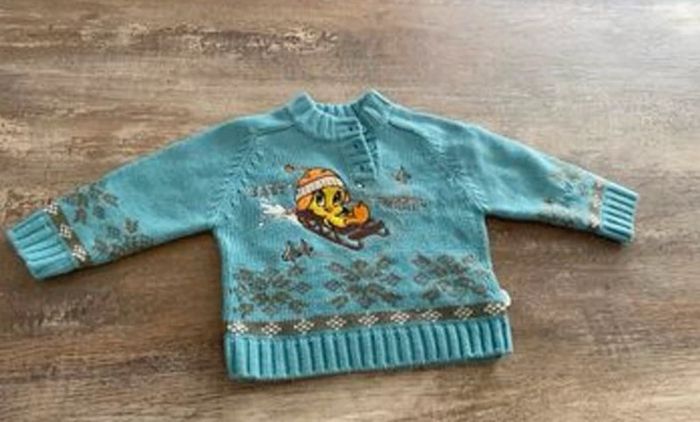 Pull looney tunes en laine comme neuf taille 6 mois D’autres vêtements disponibles dans mon dressing . N’hésitez pas à faire un panier avec plusieurs articles pour économiser les frais de port #titia31vetementsbebegarcon6mois #titia31vetementsbebefille6mois