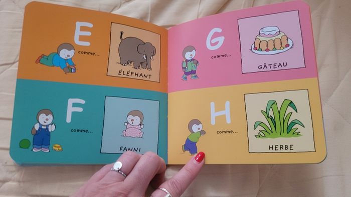 Découvre les premieres notions telles que les couleurs, les nombres, les formes, les lettres et les contraires avec T'choupi Attention certaines pages ont du feutre jaune fluo voir dernières photos #livretattoogirl_3