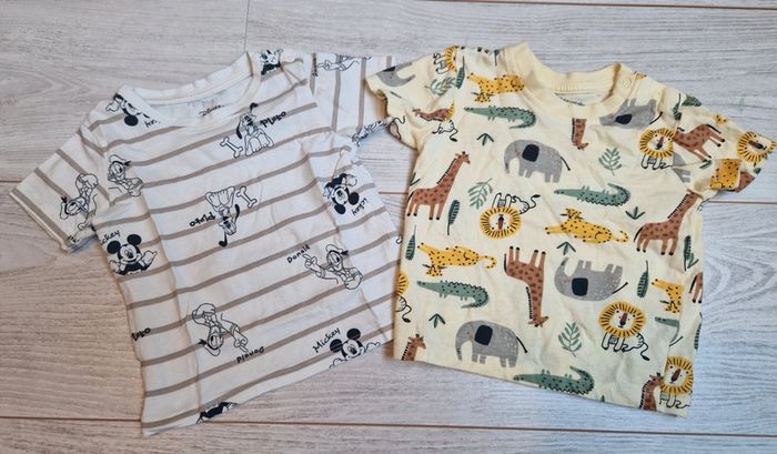 Lot de 2 t-shirts Neufs Taille 6/9 mois 1 avec des motifs disney 1 avec des motifs jungle Primark