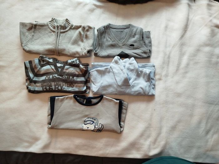 Lot de pulls et gilet Un gilet Un pull léger sans manche Le pull du bas a une toute petite tâche devant rien de méchant #pullbebegarçon #giletbebegarcon