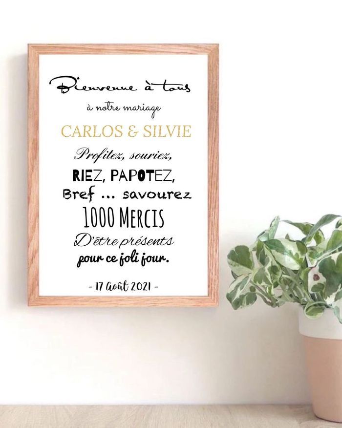 Affiche bienvenue mariage, beaucoup de modèles sont disponibles, me contacter en privé. Me contacter avant toute commande merci.