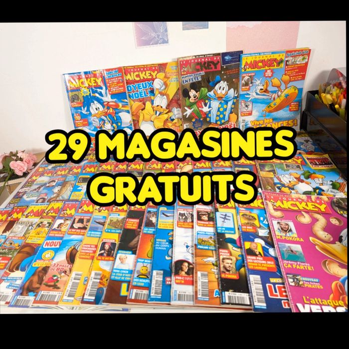 ✨ gros lot de 51 magasines mickey ✨ J'ai acheté le lot 113€ ✨ Vous en avez donc 29 offerts pour l'achat de 22 magasines ✨Il y a des numéros spéciaux Noël et spéciaux pour les vacances ✨ Les activités de certains magasines ont déjà été faites, mais certains n'ont pas été beaucoup utilisés ✨ Édition 2012/2013 ✨ Parfait pour un cadeau d'anniversaire ou de Noël ! 🎁🎀 ✨ J'ai beaucoup de jeux, jouets mais aussi des vêtements pour bébé, filles et garçons dans mon dressing et je fais des réductions sur les lots ! ☺️ ✨Je mets un cadeau dans chaque colis ! 🥰 N'hésitez pas à vous abonner, de nouvelles pépites arrivent régulièrement !😍 Dans mon dressing vous trouverez: Jogging survêtement veste gilet sweat à capuche legging pull cardigan manteau cuir perfecto oversize trench blazer tailleur pantalon ensemble jupe robe été hiver jean pantalon legging short cargo combinaison polo doudoune sport sac soleil lingerie maillot bain talon dos nu crop top chemise bretelles vintage Y2K sexy plage old money bébé fille garçon grenouillère body ensemble activités manuelles puzzle livre loisirs créatifs bijoux