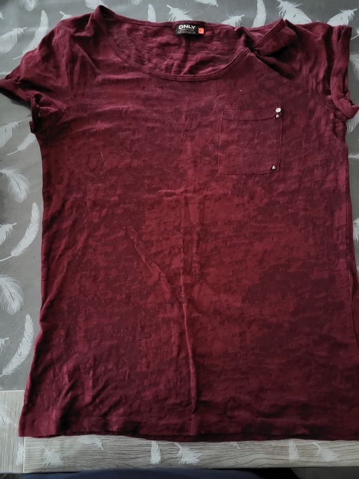 Tee-shirt manches courtes bordeaux transparent - photo numéro 2
