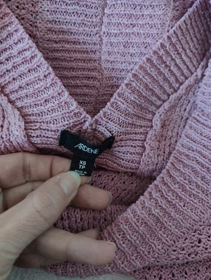 Pull en maille rose, avec col V dans le dos. Ardene, taille XS sur l'étiquette, mais peut convenir à un S
