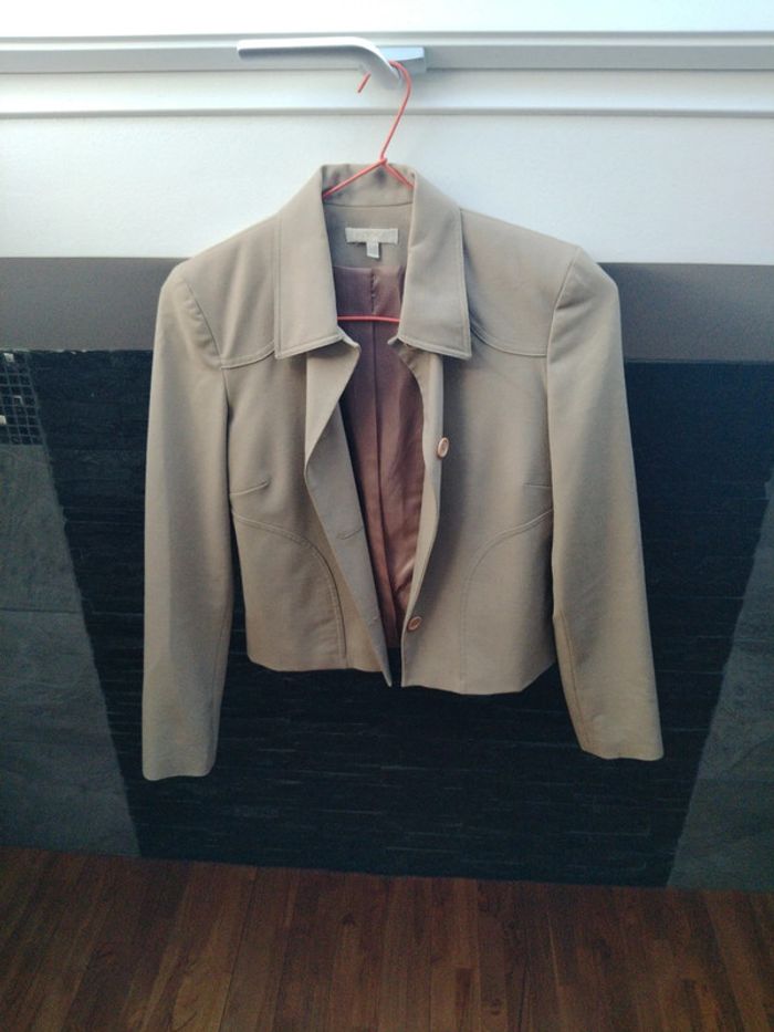 Tailleur Vest et pantalon droit Beige avec ceinture beige plus clair Taille 38 Parfait état