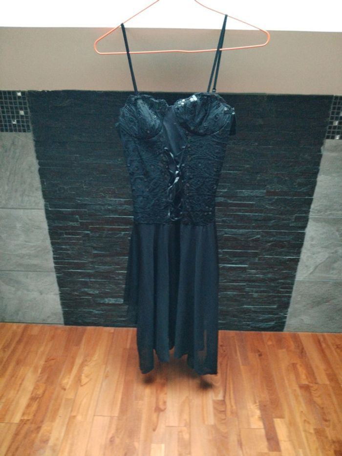 Robe noire effet bustier Fines bretelles et paillettes Bon état