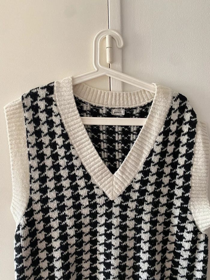 Pull sans manches à motif pieds de poule Pimkie Taille M Col V Un peu bouloché mais peut encore être porté #giletsansmanchesfemme #vestesansmanchesfemme