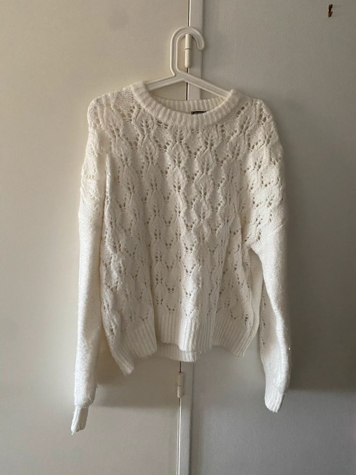 Pull blanc en maille ajourée Pimkie Taille M Légèrement bouloché