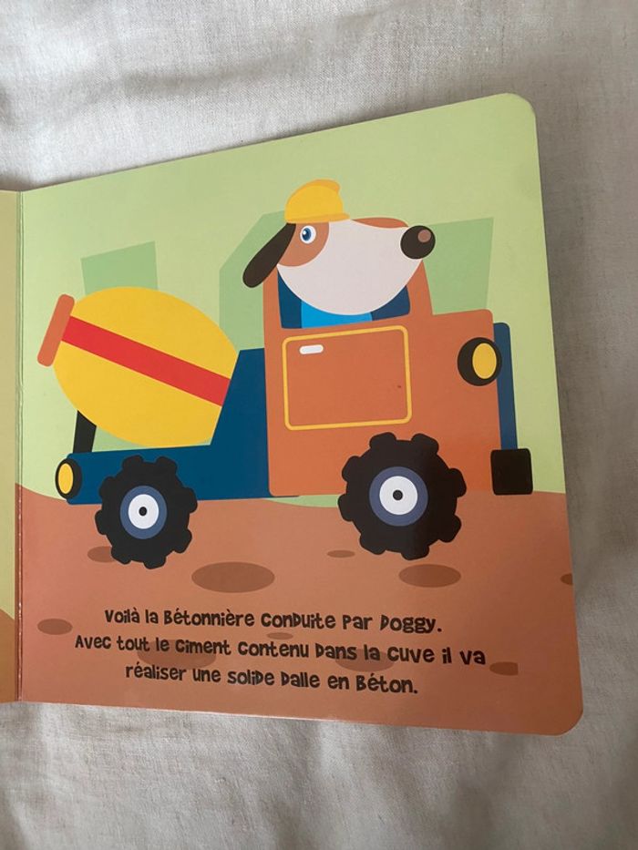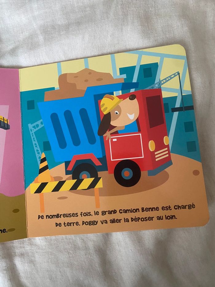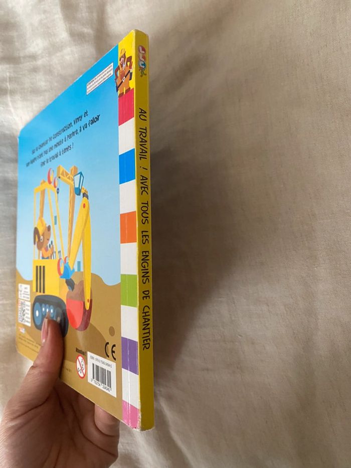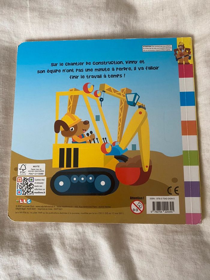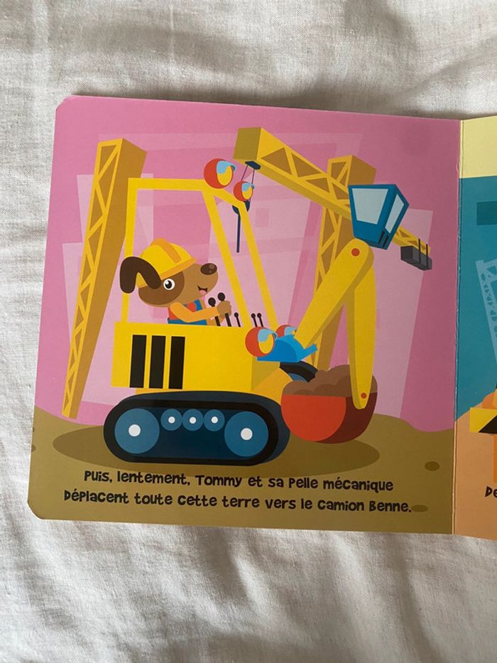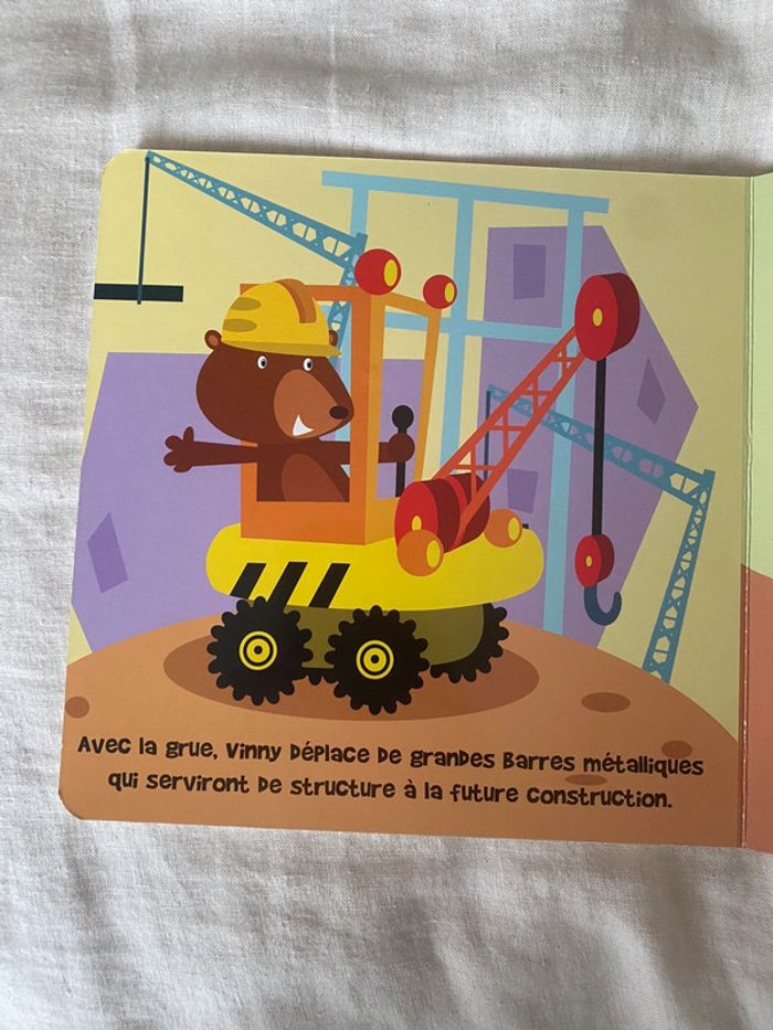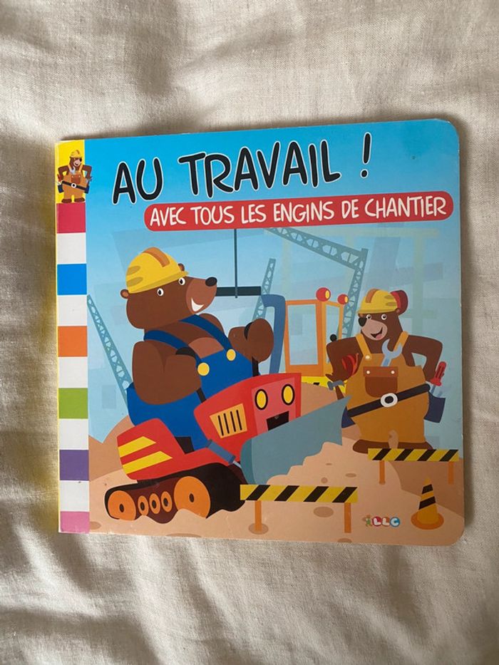 Livre enfant « au travail! Avec tous les engins de chantier » Quelques traces d’usures sur le livre mais reste en bon état