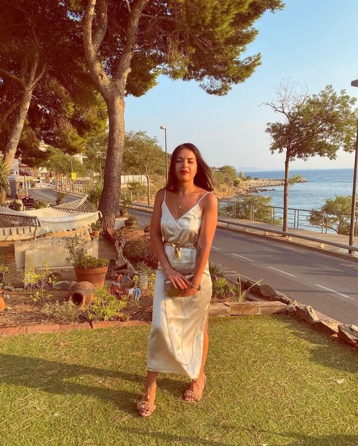 Robe longue satiné à fines bretelles Kiabi Taille S Porté seulement une seule fois donc très bon état #robesoirée #robesatinee #robelongueete Vendu sans le foulard