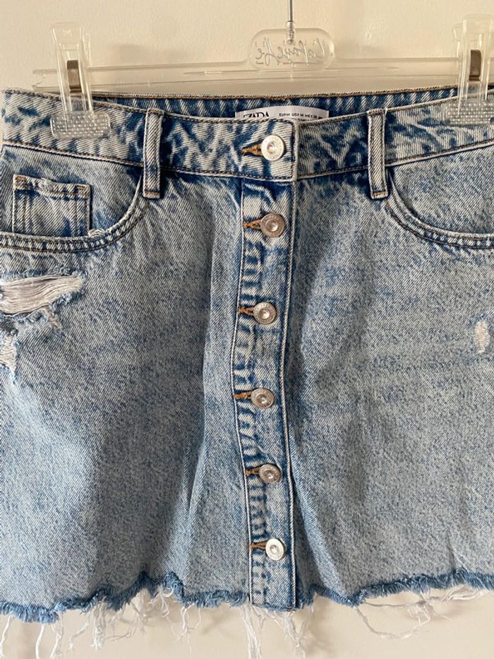 Jupe en jean Zara Boutons sur le devant Taille M Effet destroy d’origine #jupeenjeans