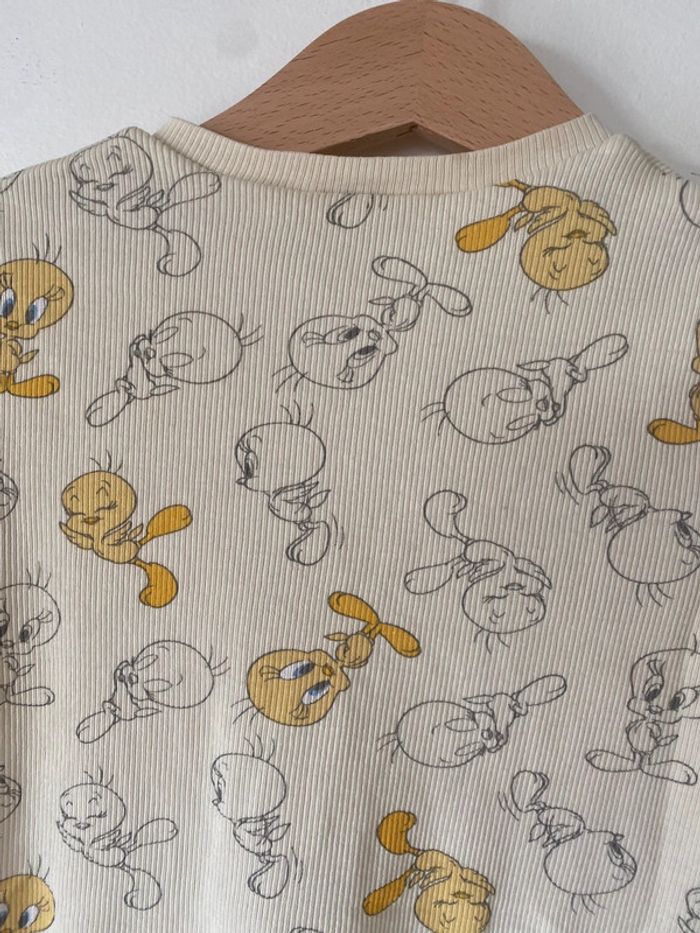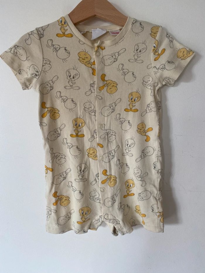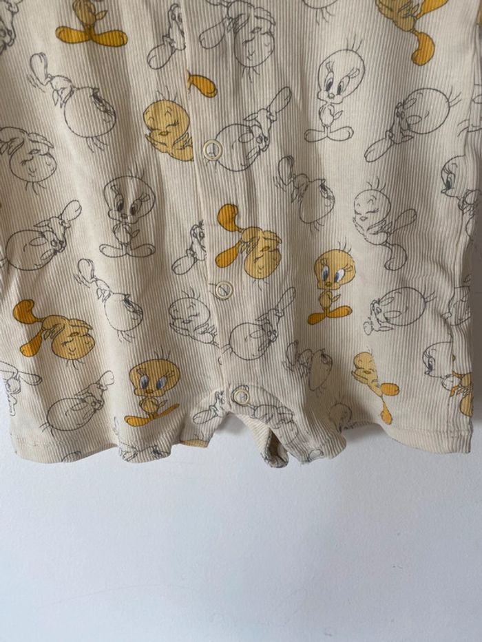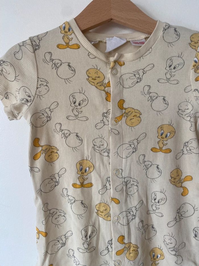 Combinaison pyjama à manches courtes Zara Avec boutons pression à l’entrejambe pour faciliter le change Avec imprimé Titi de Titi et Grominet Taille 12/18 mois : 86 cm 🌼 avec une légère petite tâche sur le col à l’arrière #combinaisonmixte #looneytunes