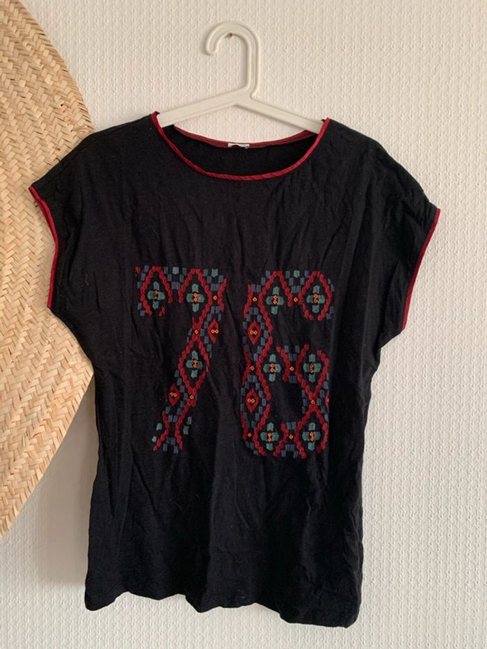 tee shirt a manches courtes Pimkie chiffre en broderie sur le devant taille M