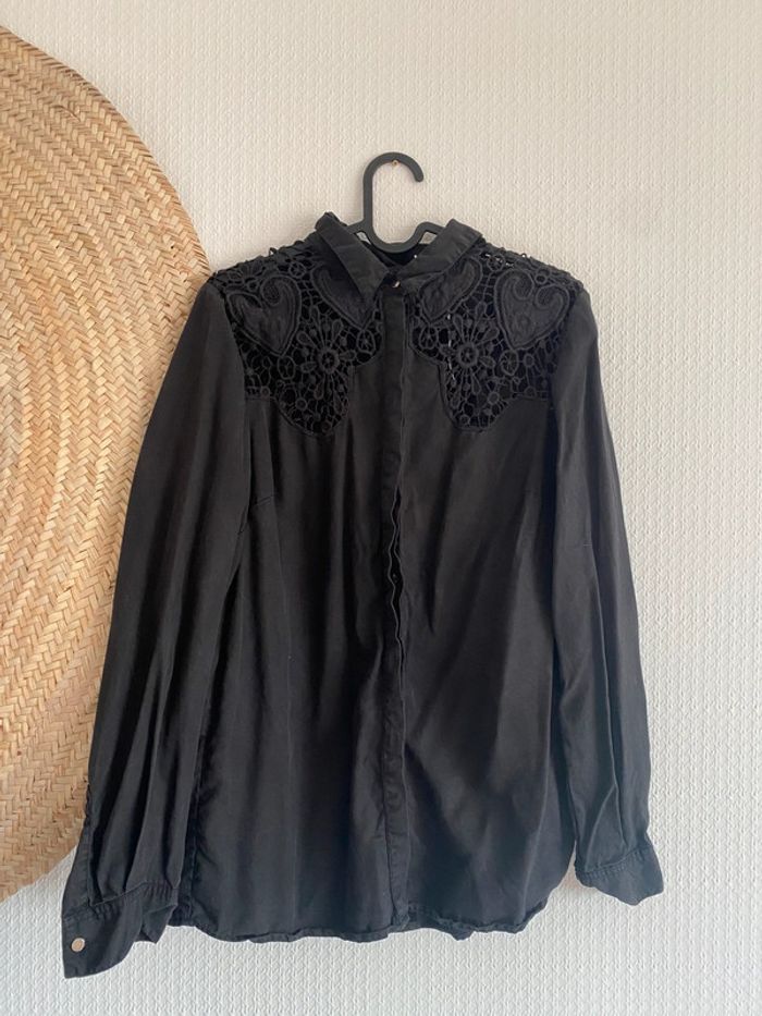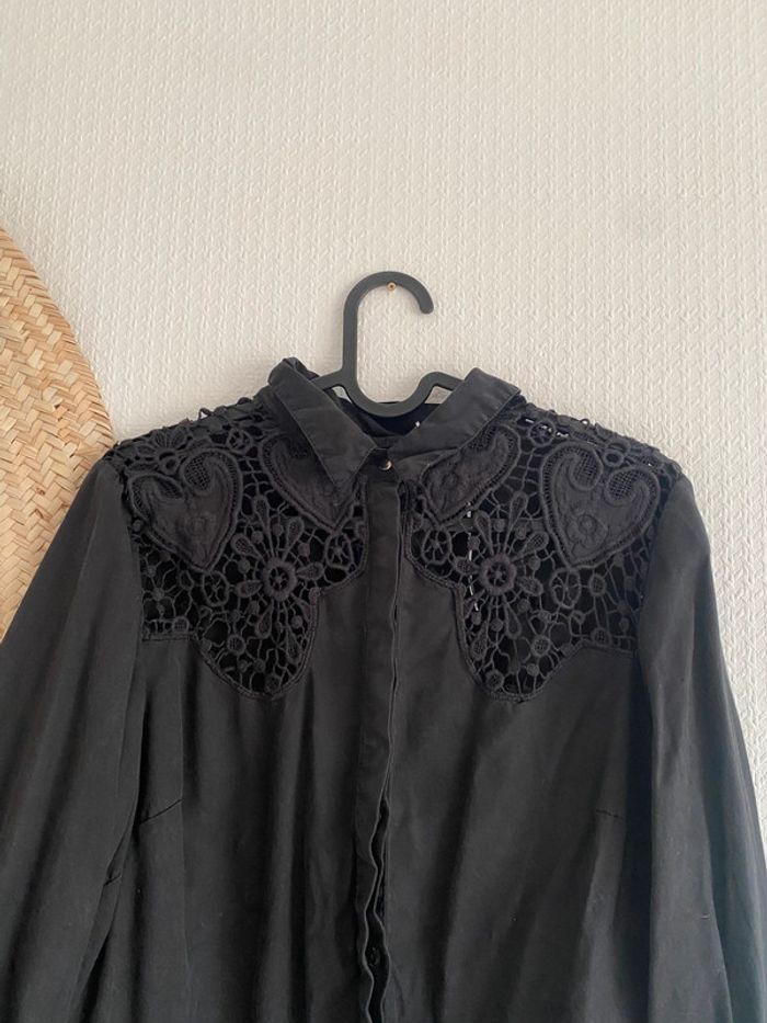Chemise noir avec details broderies sur le haut Taille M Convient également à un S selon le rendu souhaité