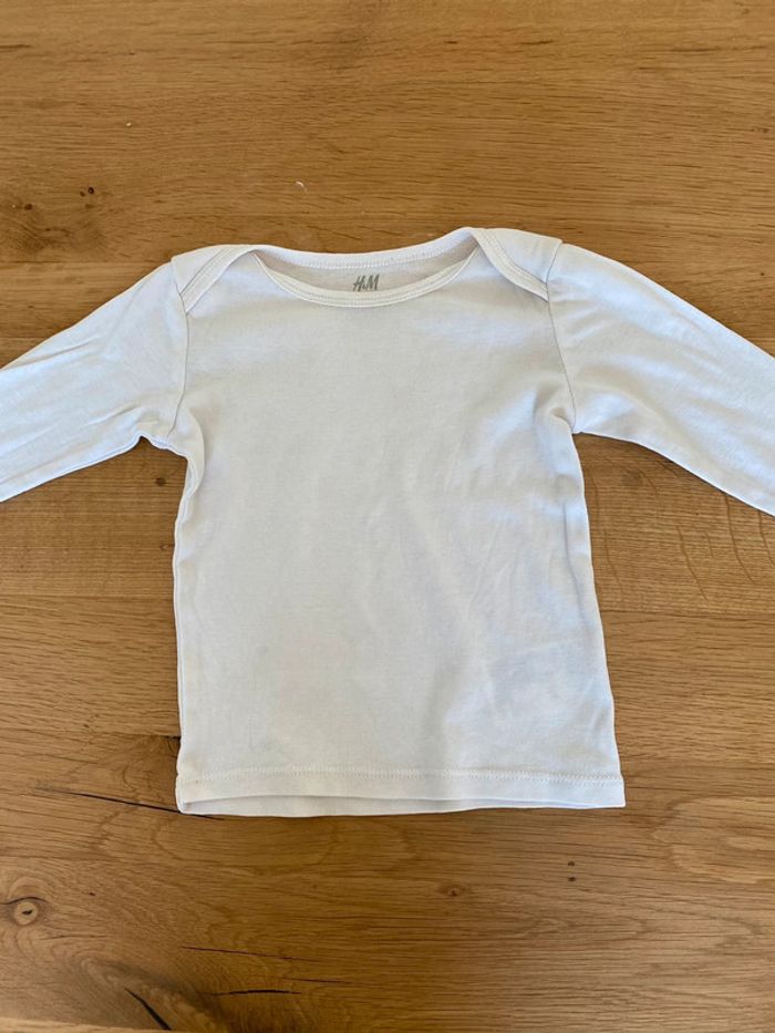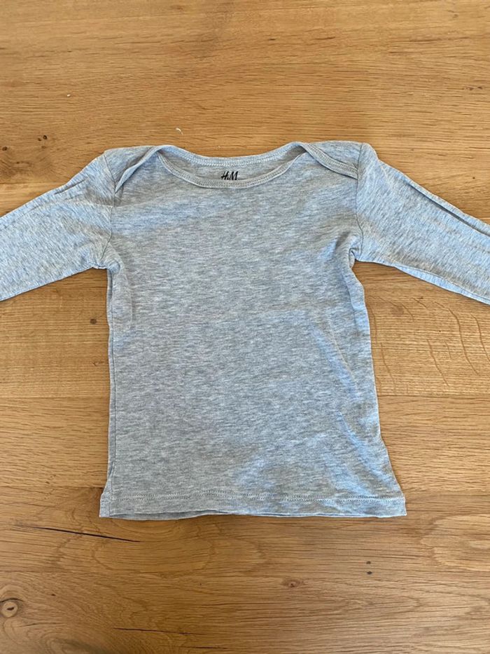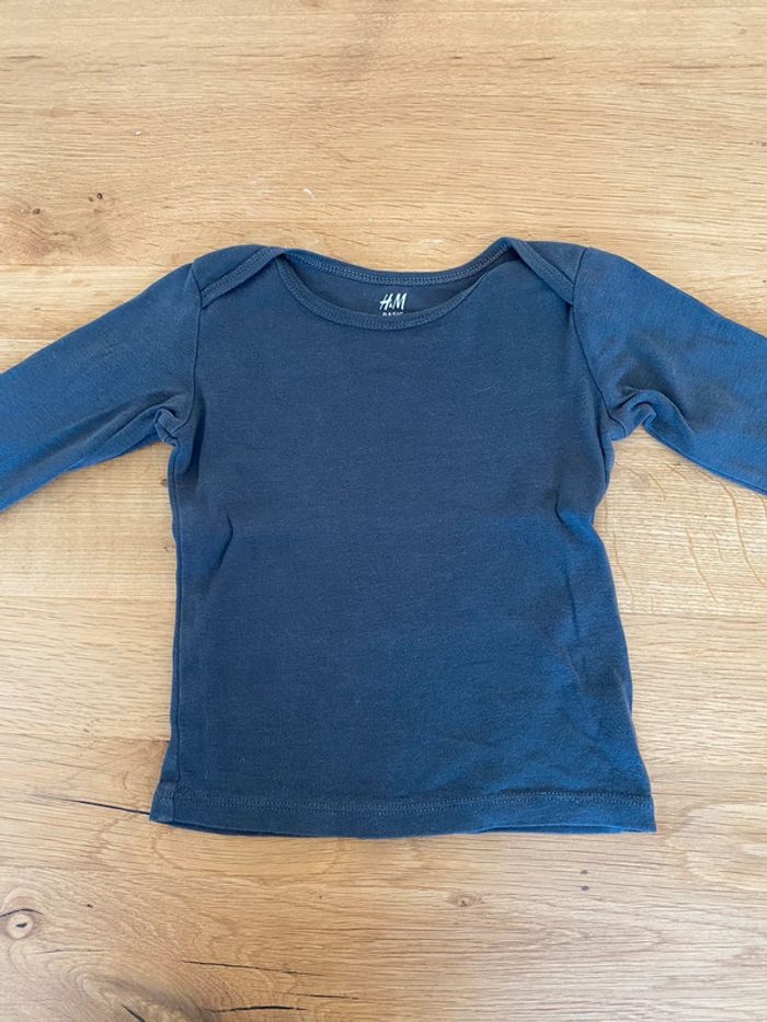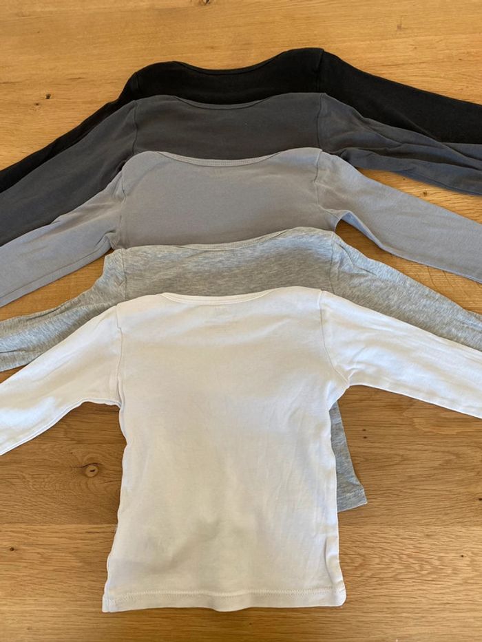 Lot de 5 tee shirts basique à manches longues h&m Taille 9/12 mois : 80 cm ⚠️ le tee shirt noir comporte un trou, le tee shirt gris foncé également. Le tee shirt gris clair a une petite tache sur le col et le tee shirt blanc n’est plus aussi éclatant qu’avant à cause du lavage et il comporte également quelques taches (voir photos) #teeshirtuni #tricotdepeau